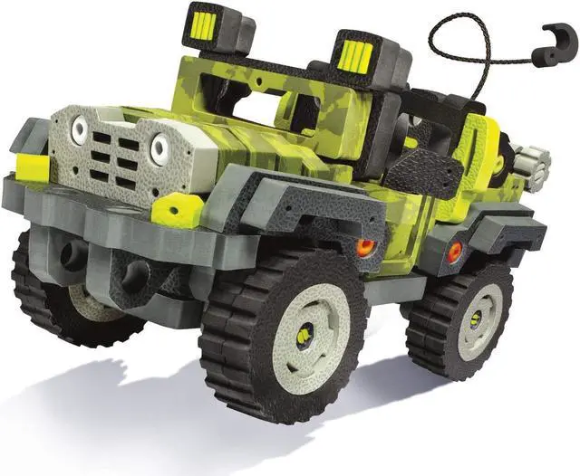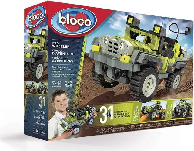 This set numbered BC-35004 contains 186 high-density foam pieces, 51 connectors, and 8 plastic wheel axles to build the 3 in 1 Wild Wheeler set. The perfect construction toy for your child to create their own pretend play adventure.