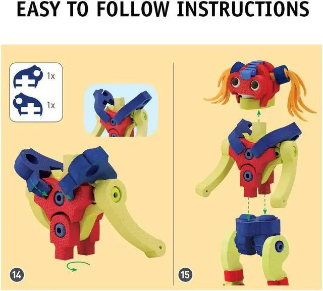 Unique foam and plastic construction set both boys and girls can enjoy. Punch out Bloco's award winning foam pieces and use the connectors to interlink, stack, and rotate the pieces at any angle to build your set. You simply plug the plastic connectors into the foam pieces and play! KEY_TAB
