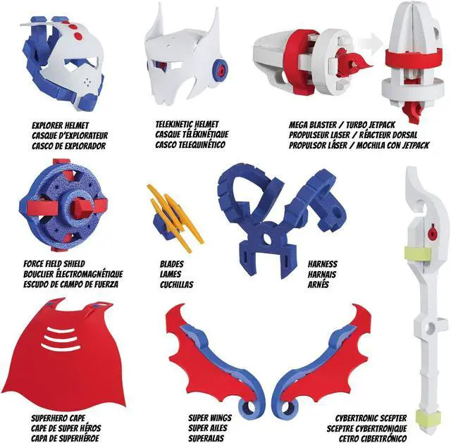 What kid hasnt pretended to be a superhero? But being the mastermind creating your own superhero, now thats just super awesome. The set already comes with instructions for 3 models BOT, HUMANOID and MUTANT. Then it also includes so many accessories like a Telekinetic Helmet, Cybertronic Scepter and Mega Blaster, youll be able to build more kinds of superheroes or give them extra superpowers to infinity and beyond! Youll never have more fun saving the world!