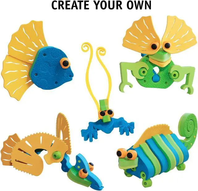 One of the cool things about lizards is they can change their skin. As for chameleons, well they can change into anything, period. So picture just how much youll enjoy constructing the illustrated Chameleon, Flying Dragon, Gecko, Frilled Lizard, Basilisk or Small Chameleon, and then, transforming them into any other species you can imagine by, um, changing the pieces around.