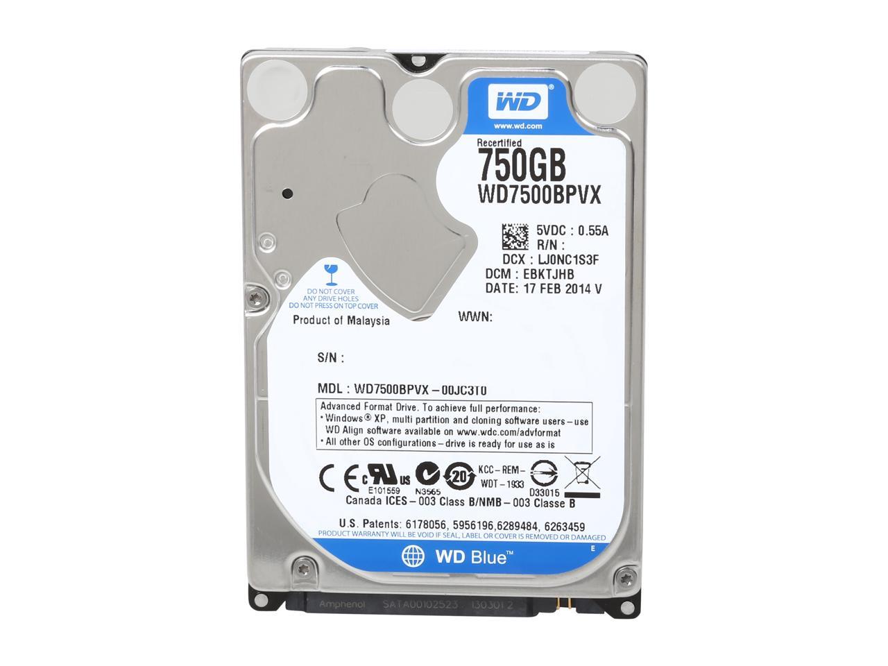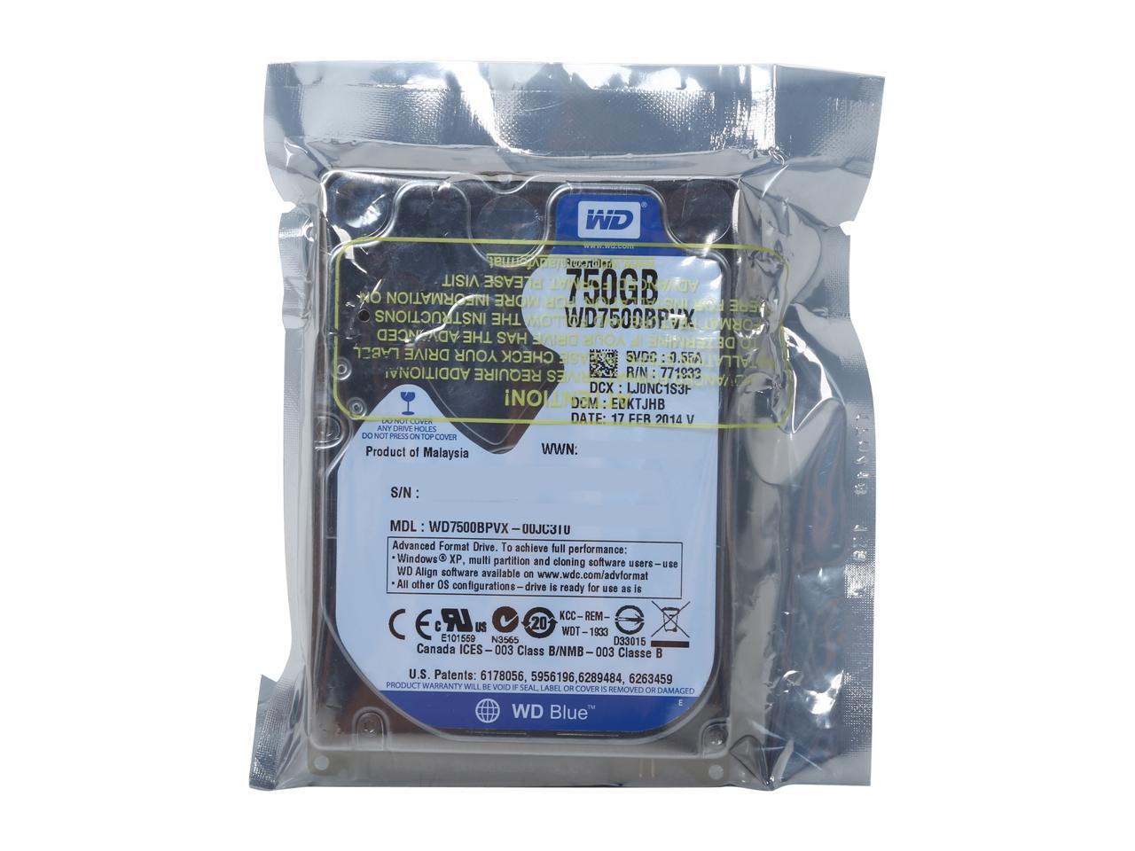 WD Blue WD7500BPVX 750GB 5400 RPM 8MB Cache SATA 6.0Gb/s 2.5" Internal Notebook Hard DriveBare Drive