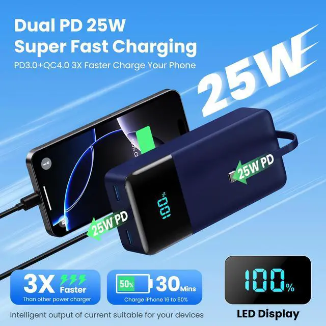 -- Dual 25W PD+QC4.0 Fast Charging Battery Pack, Speed Meets Efficiency