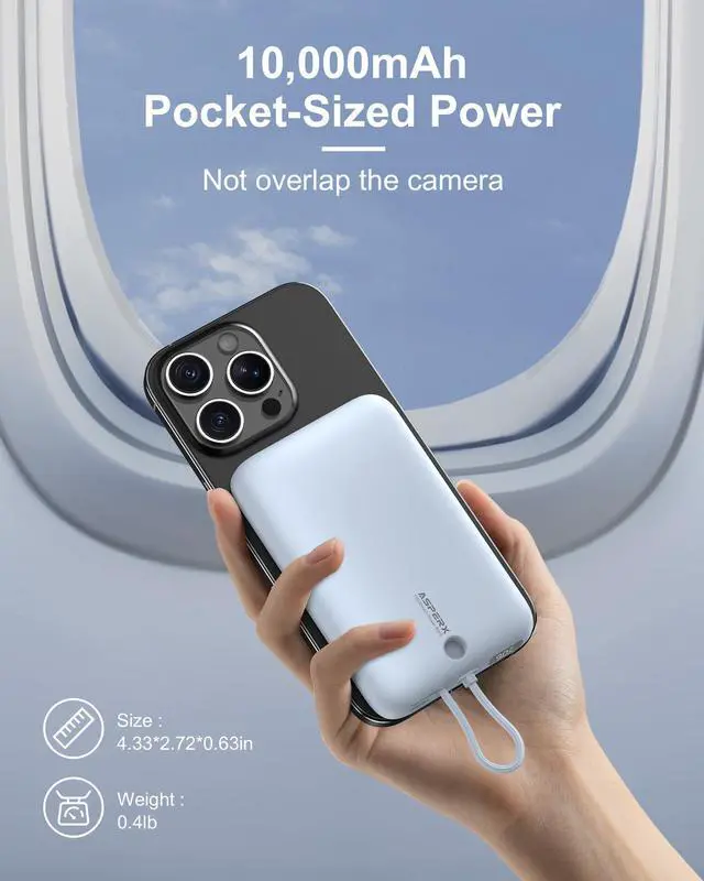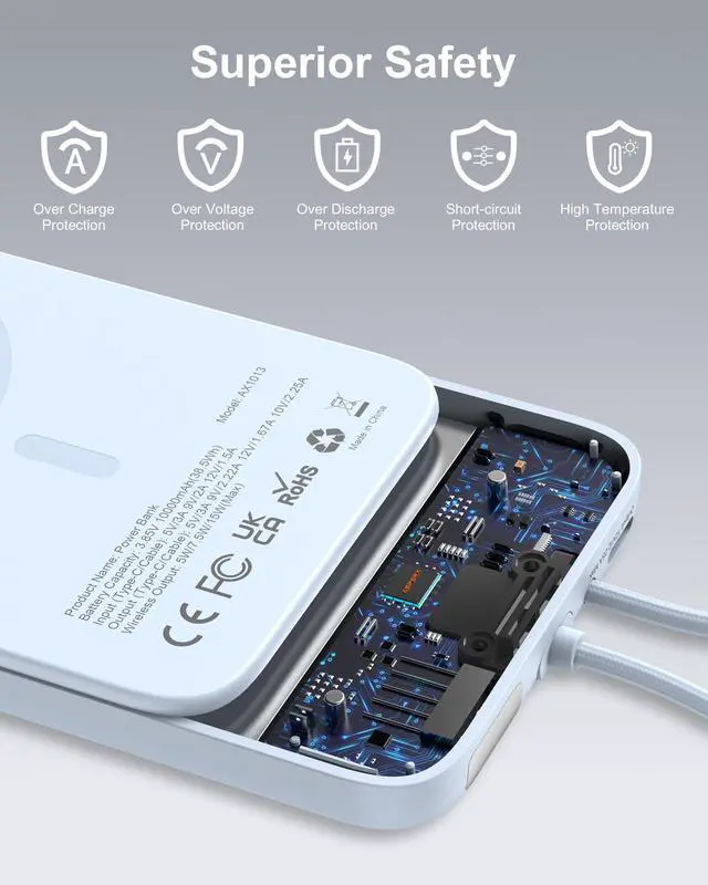 - Superior Safety: This Portable power bank built-in smart chip and low-temperature ice cores. keep your devices from overcharging, over-current, short circuits and high-temperature protection to protect the safety of your portable charger. What You Get: 10000mAh Magnetic Power bank x 1, USB-C Charging Cable x 1, User Manual x 1. AsperX professional technical support and always friendly customer service.