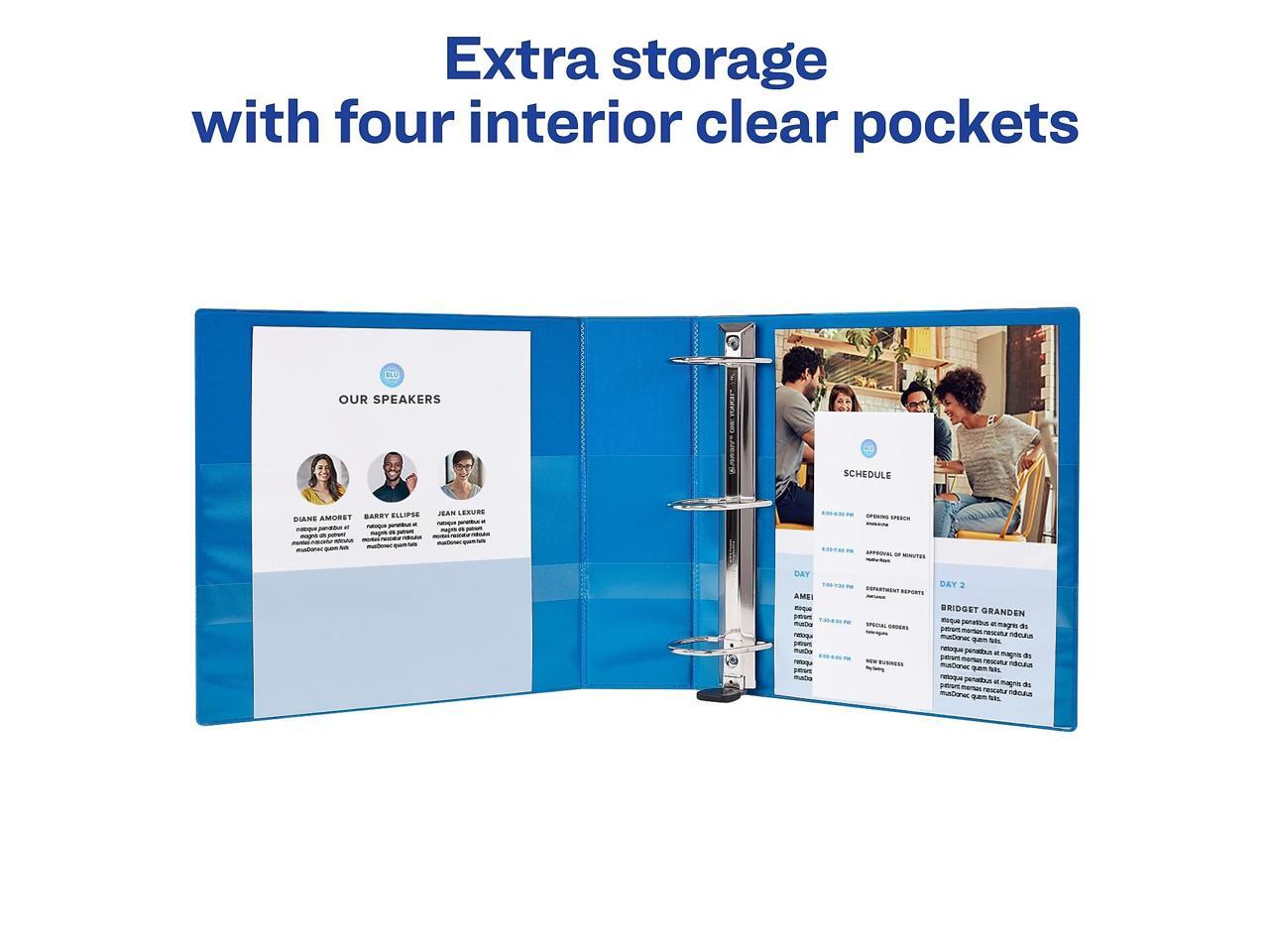 - Avery Pacific Blue 3 Ring Binders are perfect for organization as school binders, recipe binders, receipt binders and more. Store extra notes and documents with four interior pockets made with a non-stick material that keeps your print safe and smudge-free.