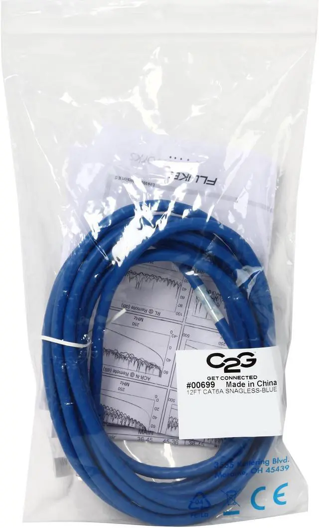 C2G 00699 Cat6a Cable - Snagless Unshielded Ethernet Network Patch Cable, Blue (12 Feet, 3.65 Meters)