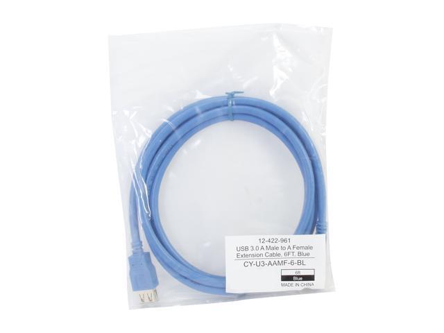 Coboc CY-U3-AAMF-6-BL 6ft SuperSpeed 5Gbps USB 3.0 A Male to A Female Extension Cable,Gold Plated,Blue,M-F