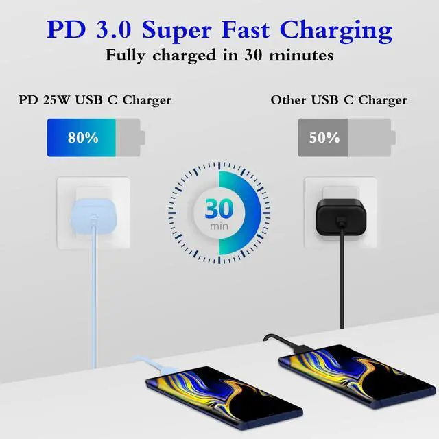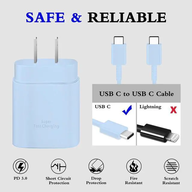 PD 3.0 USB-C Wall Charger for Galaxy S24/S24+/S24 Ultra 5G/S23/S23+/S23 Ultra 5G/S22/S22+/S22 Ultra 5GS22/S22 Ultra/S22+/S21/S21+/S21 Ultra/S20/S20+/S20 Ultra/Note 20/Note 20 Ultra/Note 10