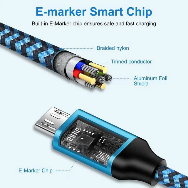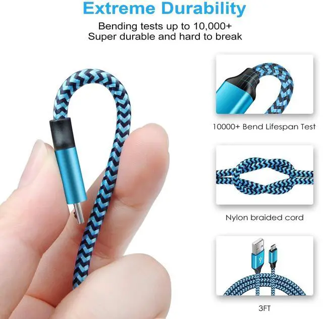 • 6FT Micro Charger Cable: Android Phone cable made of premium quality material and nylon braided, it can bear 10000+ bend lifespan, flexible tangle free and extra strong durable in every way. Meanwhile, Micro USB Cord provides fast charging with quick charger up to 2.4A and data transfer speeds up to 480Mbps.