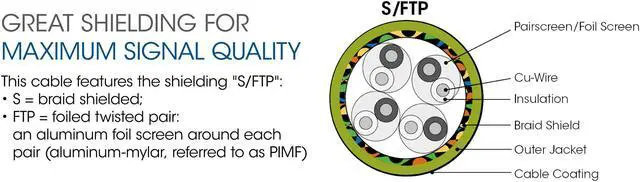 S/FTP with overall aluminum braid shielding and aluminum-mylar foil around each pair