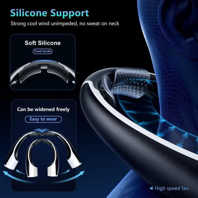 The top of the fan is made of silicone holder, which makes the fan freely adjustable in size, suitable for all sizes of necks (e.g. thick, thin), no need to worry about wearing problems.