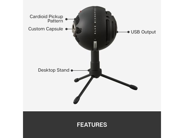 Blue Snowball iCE USB Microphone for PC, Mac, Gaming, Recording, Streaming, Podcasting, with Cardioid Condenser Mic Capsule, Adjustable Desktop Stand and USB cable, Plug 'n Play – Black