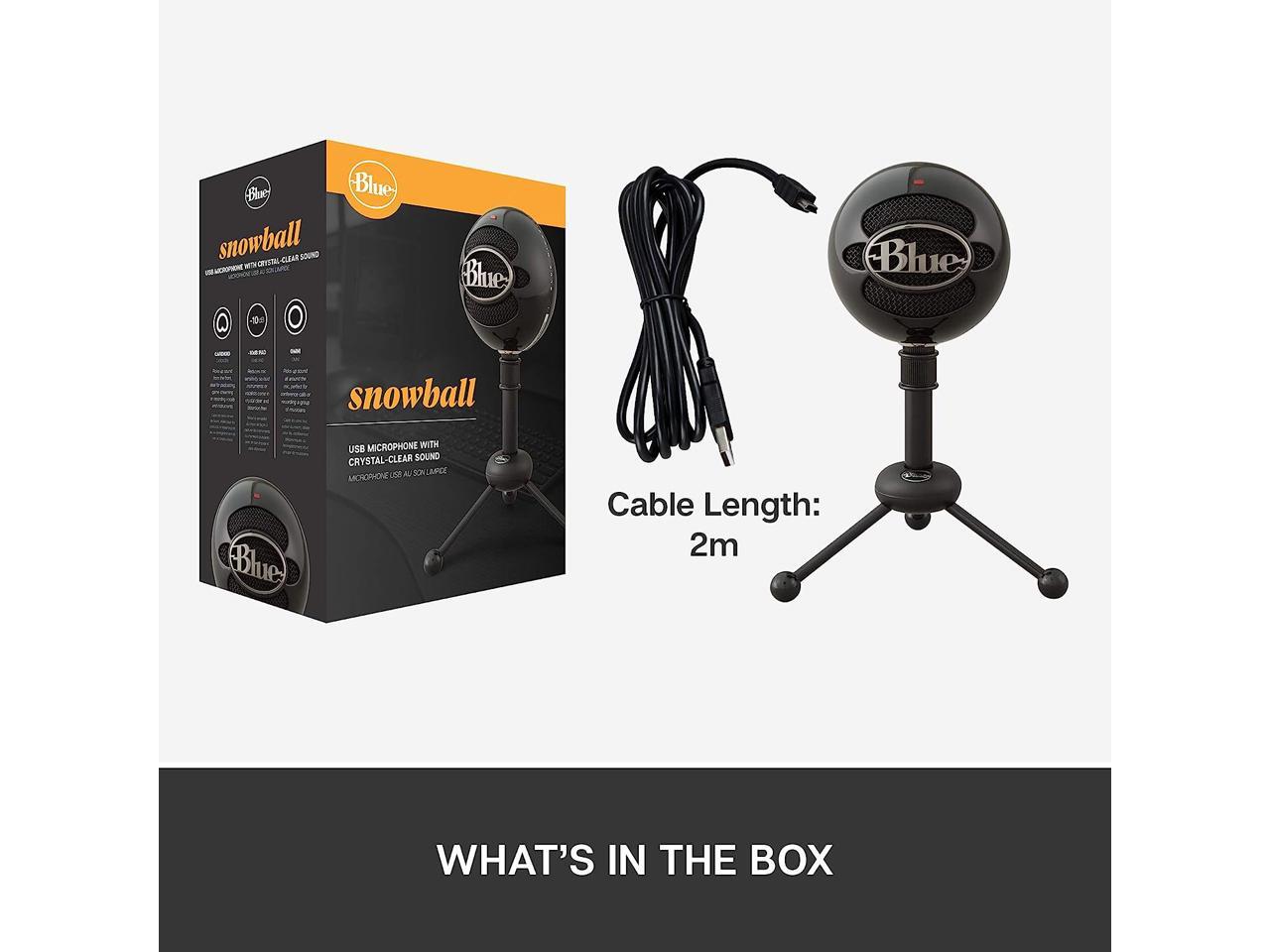 Blue Snowball USB Microphone for PC, Mac, Gaming, Recording, Streaming, Podcasting, Condenser Mic with Cardioid and Omnidirectional Pickup Patterns, Stylish Retro Design – Gloss Black