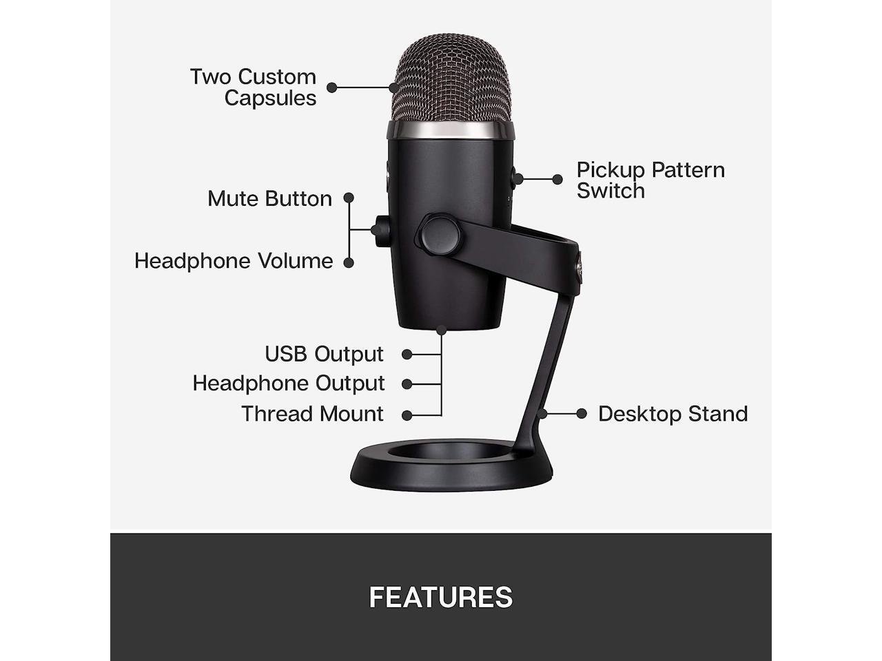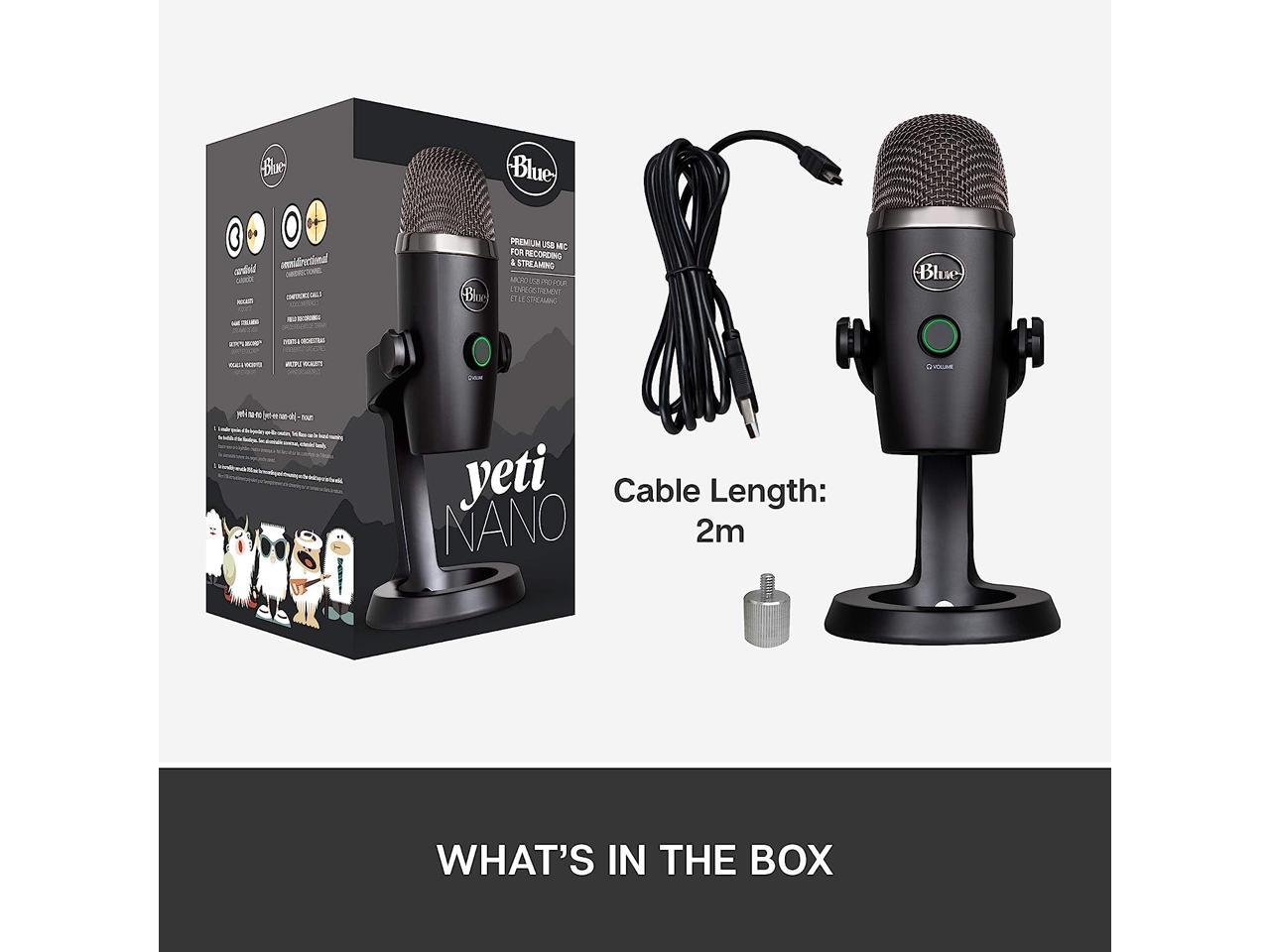 Blue Yeti Nano Premium USB Microphone for PC, Mac, Gaming, Recording, Streaming, Podcasting, Condenser Mic with Blue VO!CE Effects, Cardioid and Omni, No-Latency Monitoring - Blackout