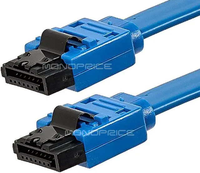 Each end of this internal cable features a straight connector with an attached locking latch, to ensure that your connections do not come loose due to movement or vibration. Note that SATA 6 Gbps cables are backwards compatible and can be used with SATA 3 Gbps and SATA 1.5 Gbps devices. However, the data transfer of the SATA subsystem will be limited to that of the slowest device. So, for example, if a SATA 6 Gbps cable is connected to a SATA 3 Gbps drive and a SATA 1.5 Gbps controller, the drive will be limited to a transfer rate of 1.5 Gbps.