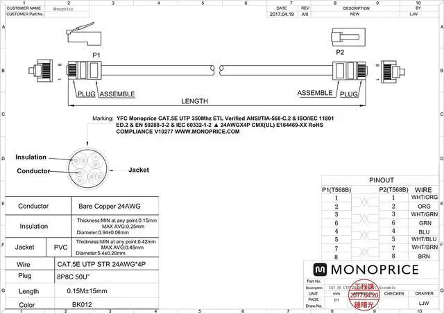 Monoprice Ethernet cables are made of 100 Percent pure bare copper wire, as opposed to copper clad aluminum (CCA) wire, and are therefore fully compliant with UL Code 444 and National Electrical Code TIA-568-C. 2 fire and safety standards, which require pure bare copper wire in communications cables.