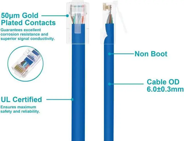 Cat6 Patch Cable, UTP, 24AWG, 550MHz, Pure BareCopper, RJ45, Zeroboot Series Ethernet Cable