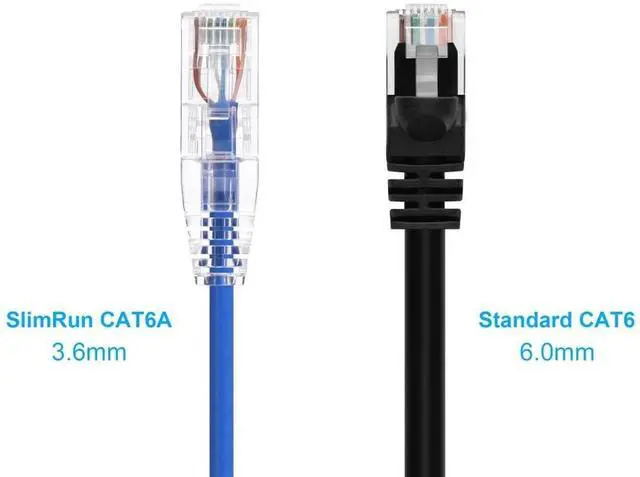 Monoprice SLIMRUN CAT6 UTP ETHERNET PATCH CABLES are designed for high density environments where space is a premium. SlimRun's ultra-slim 0.149-inch diameter 28AWG cable and narrow boot design reduces congestion and simplifies moves, additions, and changes. SlimRun Cat6 is component tested, which provides a better level of performance over channel-rated patch cables.