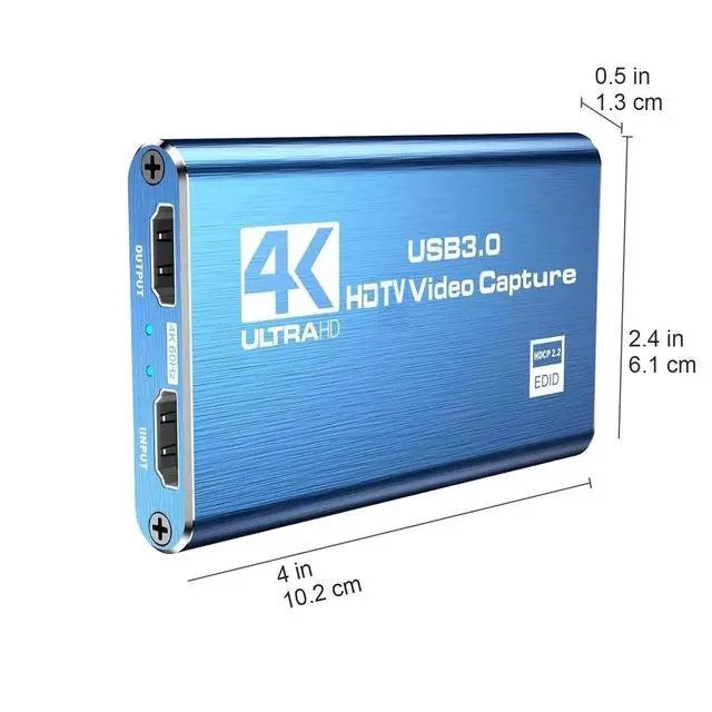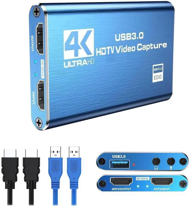 4K Audio Blue Video Capture Card - Supports 4K HDMI Input & 1080P Full HD 60fps Recording for Gameplay, Live Streaming, and Video Conferencing (Includes HDMI Cable).
