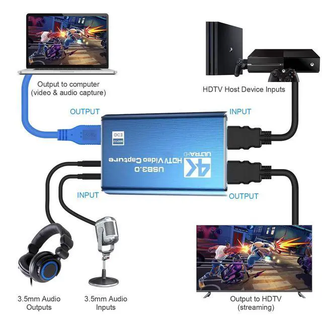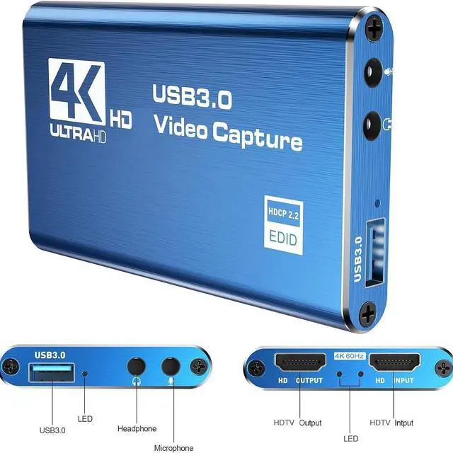4K Audio Blue Video Capture Card - Supports 4K HDMI Input & 1080P Full HD 60fps Recording for Gameplay, Live Streaming, and Video Conferencing(Includes HDMI Cable).