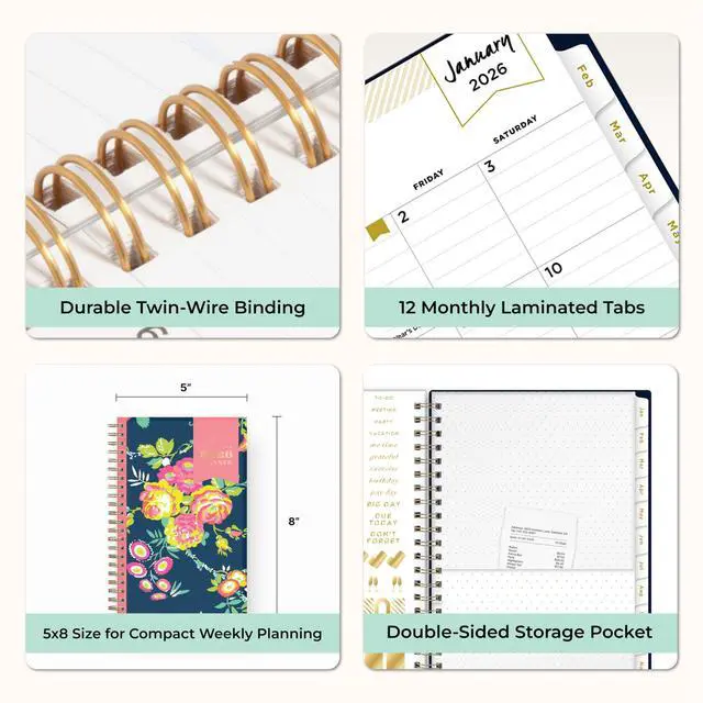Blue Sky Day Designer Weekly/monthly Planner 8x5 Navy/floral 2026 Bls103620