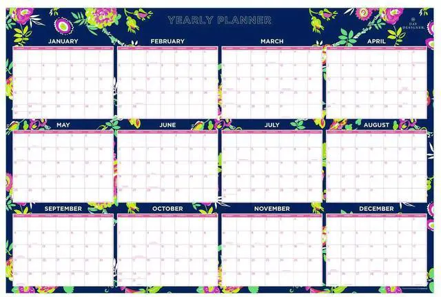 Day Designer Peyton Laminated Erasable Wall Calendar Floral Artwork 36 x 24 White/Navy Sheets 12-Month Jan to Dec: 2026 BLS103632