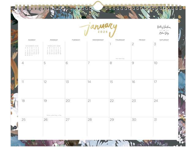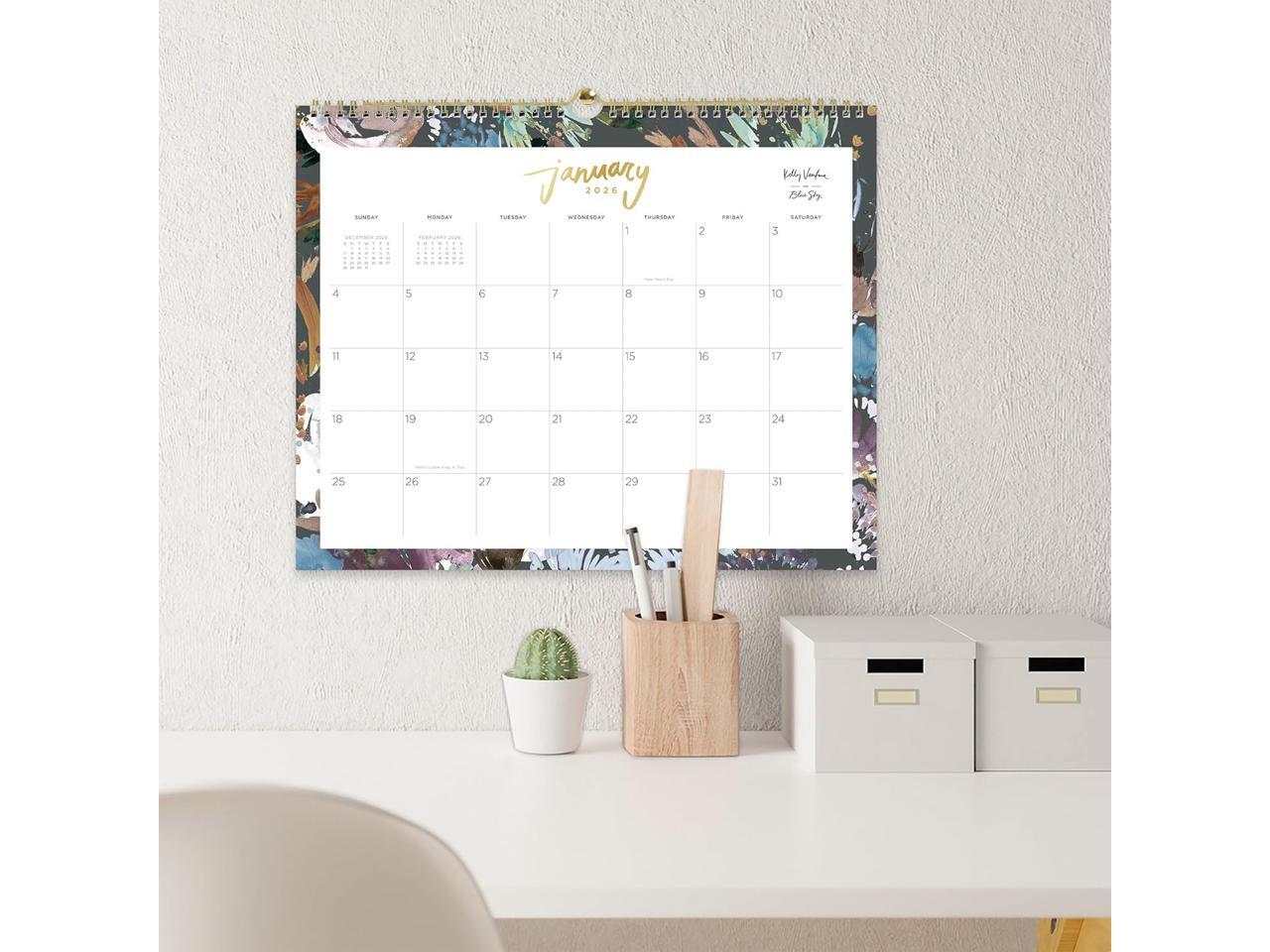 - Add a stylish touch to any room with the 2026 Blue Sky Monthly Wall Calendar. Roomy monthly views have space for appointments, deadlines, reminders, goals and more.