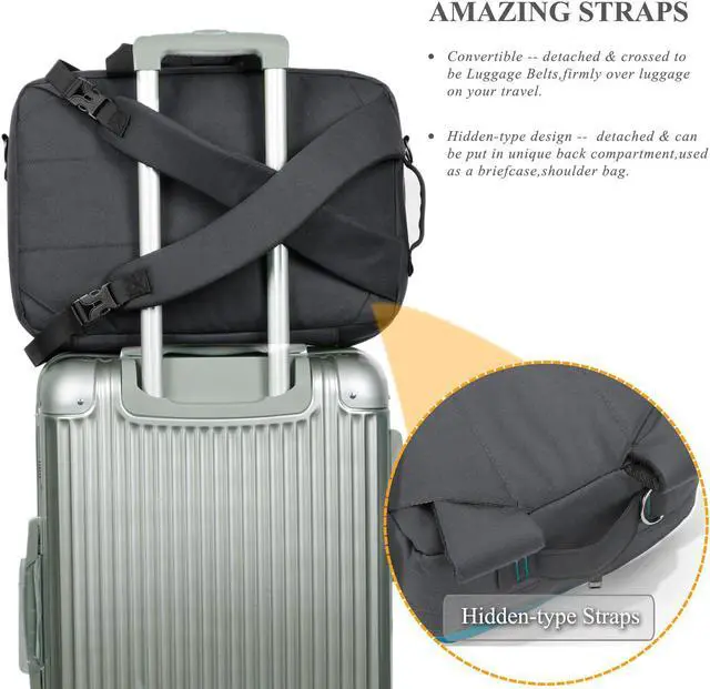 Convertible -- This multifunctional backpack features a top carry handle, a side carry handle and two hidden adjustable/detachable shoulder straps to offer multiple carrying options. With the buckles and hooks, you can convert it to backpack or single shoulder bag or briefcase according to your requirement.