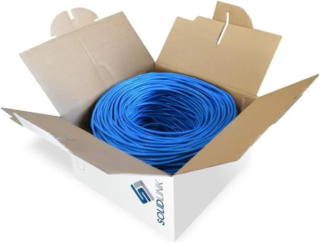 Features: • Cat5e 4 Solid UTP Unshielded Twisted Pair • Meets or exceeds Category 5e specifications • 24 AWG Solid CCA (Copper Clad Aluminum) • Gigabit Network Ready • Speed Rating of 350Mhz • Easy pull box • Voice and Data communications • Running "FT" count printed on cable makes measuring easy
