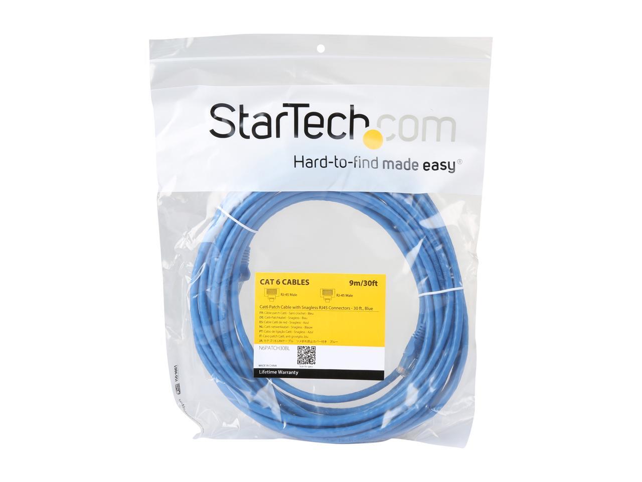 StarTech.com N6PATCH30BL Cat6 Patch Cable – 30 ft – Blue Ethernet Cable – Snagless RJ45 Cable – Ethernet Cord – Cat 6 Cable – 30ft