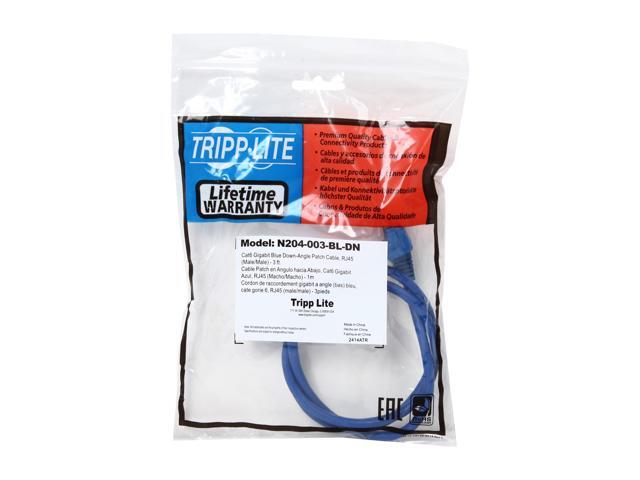 TRIPP LITE N204-003-BL-DN 3 ft. Cat 6 Blue Gigabit Right Angle Down to Straight Patch Cable