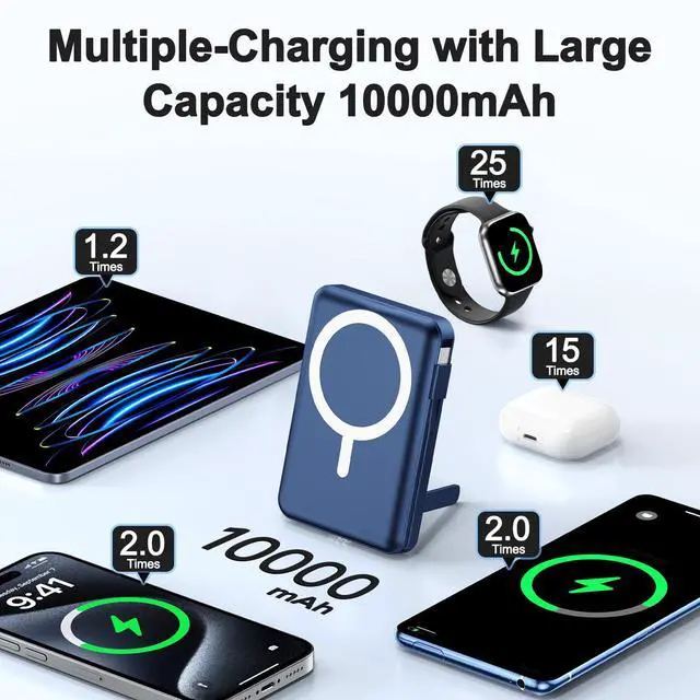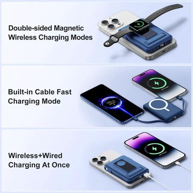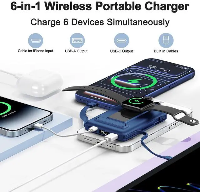 10000mAh Wireless Power Bank for iPhone with Built-in Cables