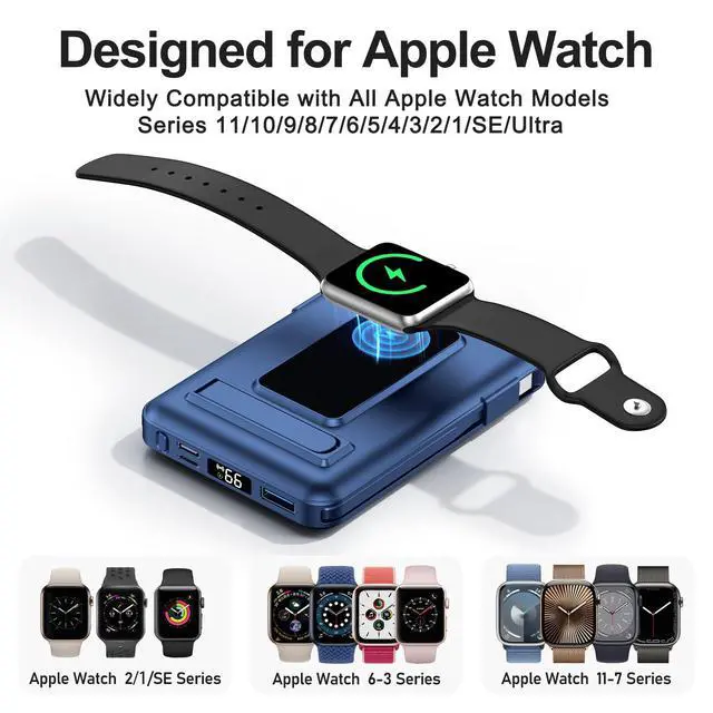 To ensure stable charging, place your Apple Watch flat on the wireless iWatch charging area of the power bank. Then press the power button to activate charging.