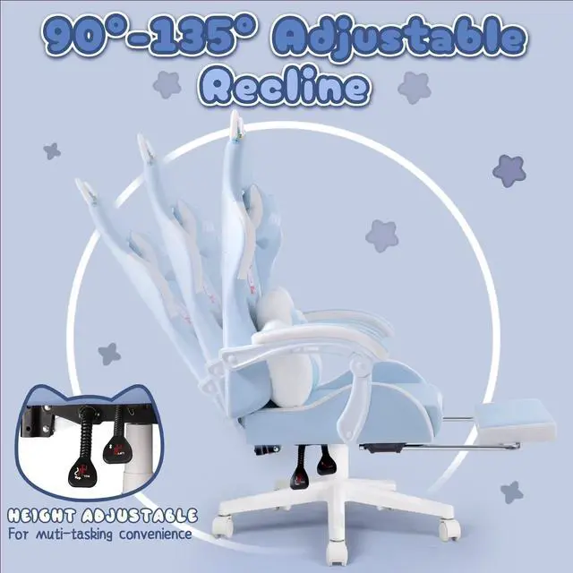 [Ergonomic Gaming Chair With Telescopic Footrest]- The Ergonomic Gaming Chair features a backrest that adjusts from 90-135°, with adjustable headrest and lumbar support. The cushion height ranges from 13.8 to 17.7 inches for versatile seating, catering to both kids and adults who enjoy their gaming chair for girl.