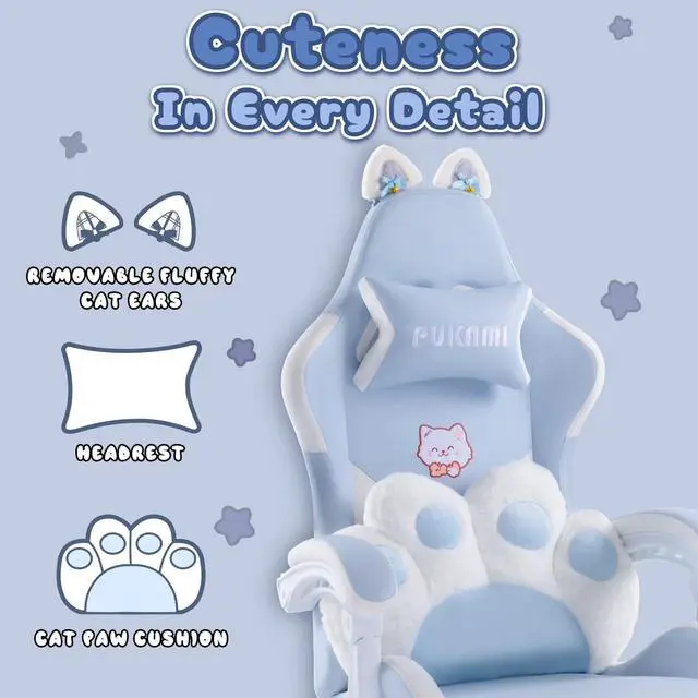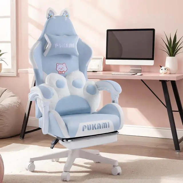 [Ergonomic Comfort with Playful Design] - Experience ultimate comfort with the VITESSE pink gaming chair with cat paw lumbar cushion and cat ears. designed for both kids and adults, this ergonomic chair ensures long gaming sessions are comfortable and enjoyable.