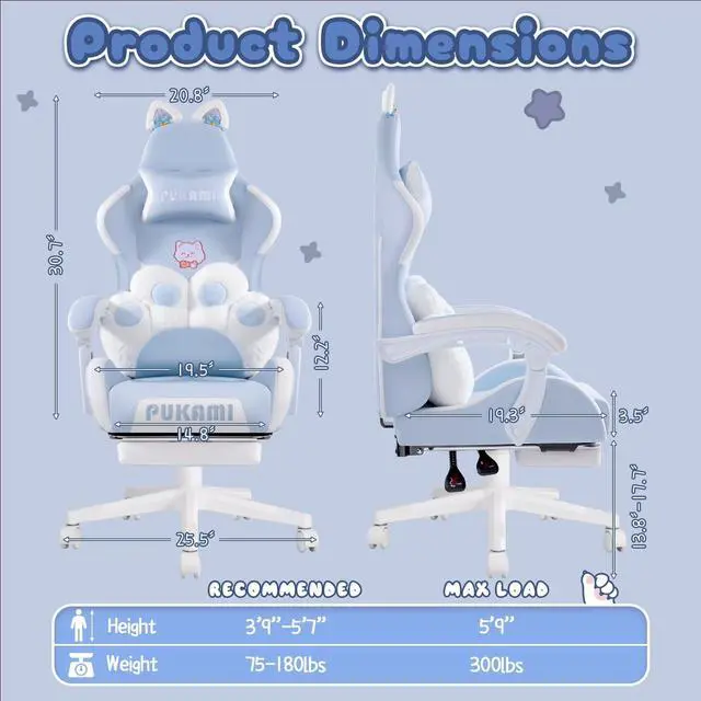 [Comfortable Back And Lumbar Support]- The ergonomic computer chair for girl with footrest and headrest is perfect for any gamer. Its comfortable reclining feature makes it ideal for both PC and console gaming, providing support for your back and neck.