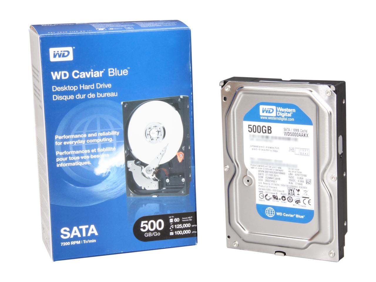WD WD Blue WDBAAX5000ENC-NRSN 500GB 7200 RPM 16MB Cache SATA 3.0Gb/s 3.5" Internal Hard Drive -Retail kit