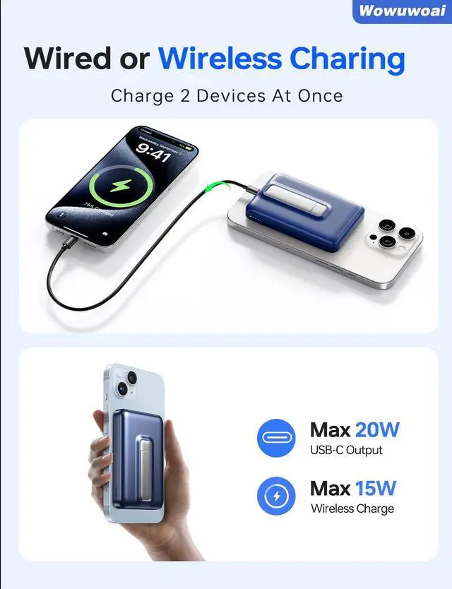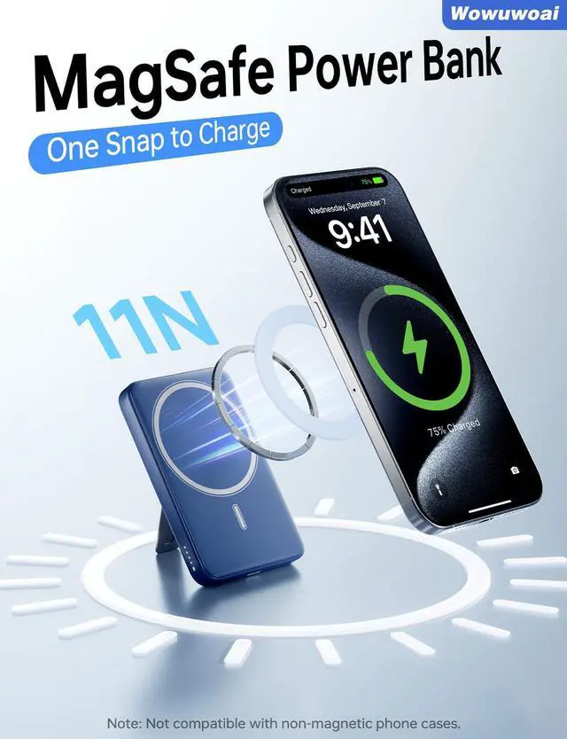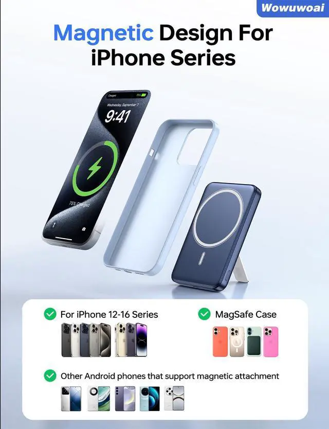 - Designed for MagSafe & Magnetic-compatible Phones: this powerbank is compatible with iPhone Air/17/17 Pro/17 Pro Max, with iPhone 16/16 Plus/16 Pro/16 Pro Max, with iPhone 15/15 Plus/15 Pro/15 Pro Max, with iPhone 14/14 Plus/14 Pro/14 Pro Max, with iPhone 13/13 Mini/13 Pro/13 Pro Max, with iPhone 12/12 Mini/12 Pro/12 Pro Max , as well as other Android phones that support wireless charging. It can be used with the phone itself or paired with an official magnetic phone case. (Not compatible with non-magnetic phone cases.)