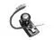 Innovative metallic tie/shirt clip for storing when headset not in use.
