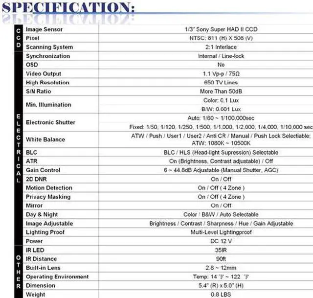 650 TV Lines 2.8 ~ 12mm Vari-Focal Lens 35IR Effio High Resolution Camera ( White, 12V DC, Indoor Use Only )