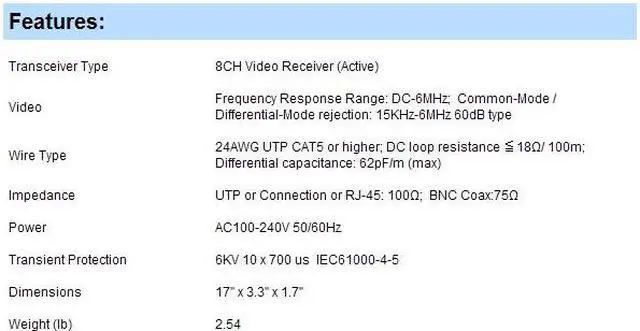 UTP or Connection or RJ-45: 100O; BNC Coax:75O
