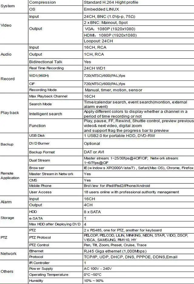 BL-TD2524HDC is a premier 24 CH realtime 960H high resolution DVR, which adopt standard H.264 High profile compression format and industry's advanced SOC technics to ensure realtime 960H recording in each channel. Support 16 CH video input, 16 CH audio input, feature simultaneous 16 CH playback, and HDMI 1080P high resolution display with standard 2U case.