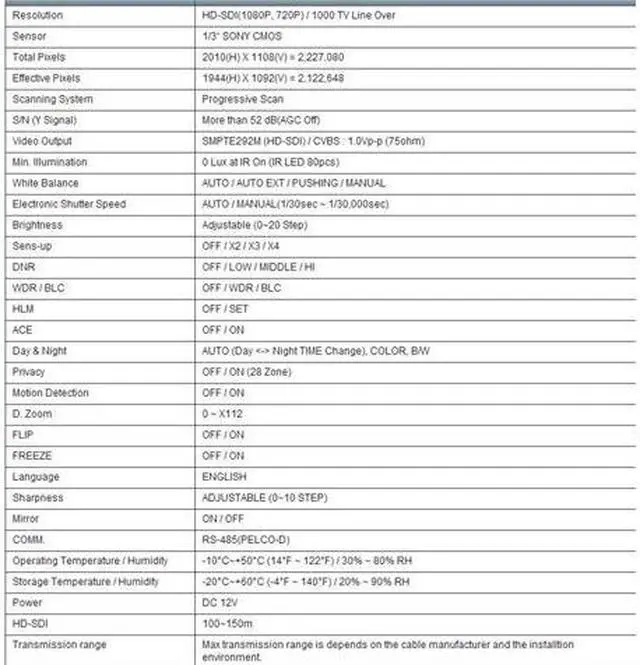 HD-SDI cameras are recommended to use only with RG59/RG6 cables with crimp/compressed connectors