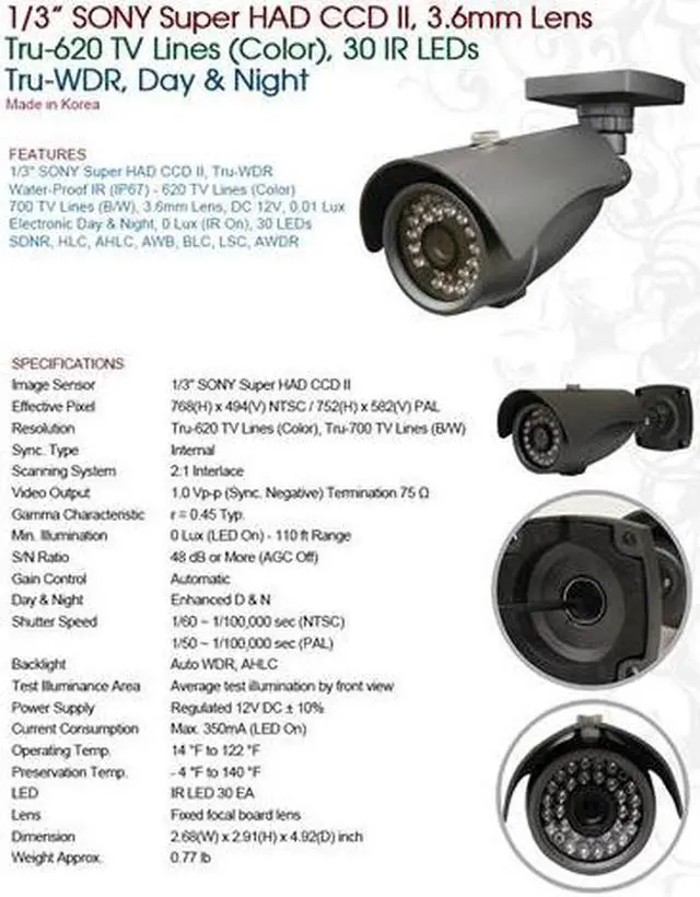 •1/3" SONY Super HAD CCD II, Tru-WDR