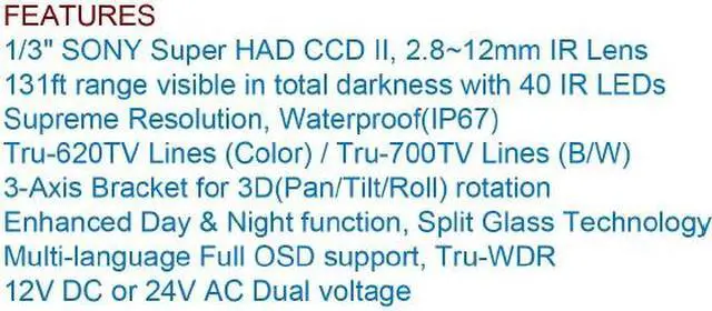 1/3" SONY Super HAD CCD II, 2.8~12mm Lens