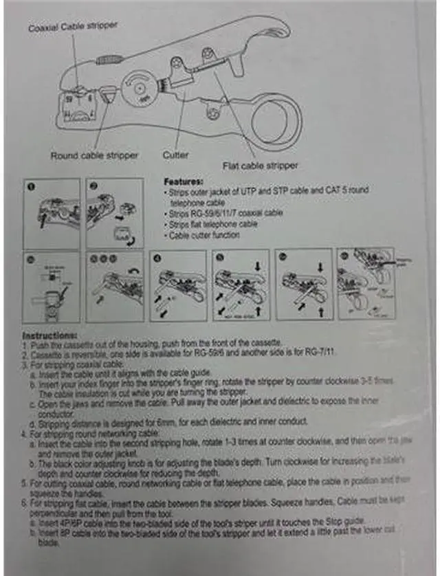 Strips outer jacket of UTP and STP cable and CAT 5 round Telephone Cable