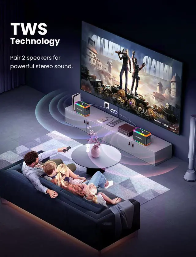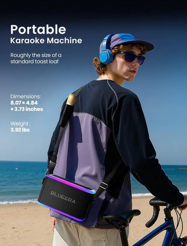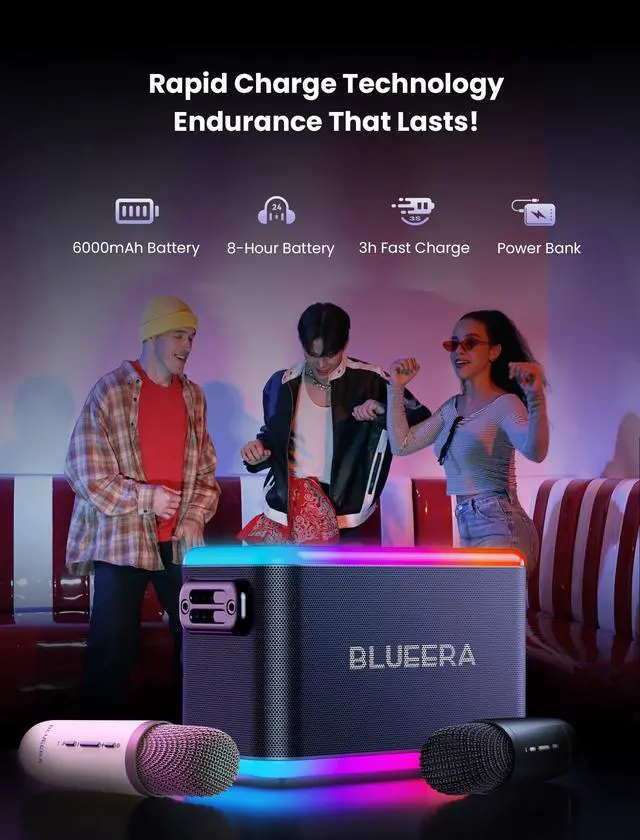 Get the party started anywhere with our portable karaoke machine! Featuring a built-in 6000mAh rechargeable battery, this speaker provides 3 to 6 hours of continuous music playback on a full charge and weighs only 3.75 pounds. Equipped with a shoulder strap, its easy to take on any adventure, whether its a birthday party, outdoor event, or just a fun night at home. Experience powerful, balanced sound with a 60W output from dual high-performance audio drivers, delivering crystal-clear audio and strong bass with minimal distortion. Elevate the atmosphere with dynamic LED lights - choose from 7-color gradient, music sync, or breathing light modes to set the vibe. Enjoy endless entertainment with two wireless microphones that offer 360° sound pickup and 5 different audio effects, making every performance unique. Versatile connectivity options, including Bluetooth 5.0, TF card, USB, and AUX-in, ensure compatibility with your devices and even guitars. Plus, TWS Mode allows you to sync two speakers for a full stereo sound experience. Ideal as a gift for teenagers, this karaoke machine is a hit for any occasion - from birthdays to Christmas, Easter, and beyond. Unleash the fun and make every moment memorable with this all-in-one portable karaoke solution!