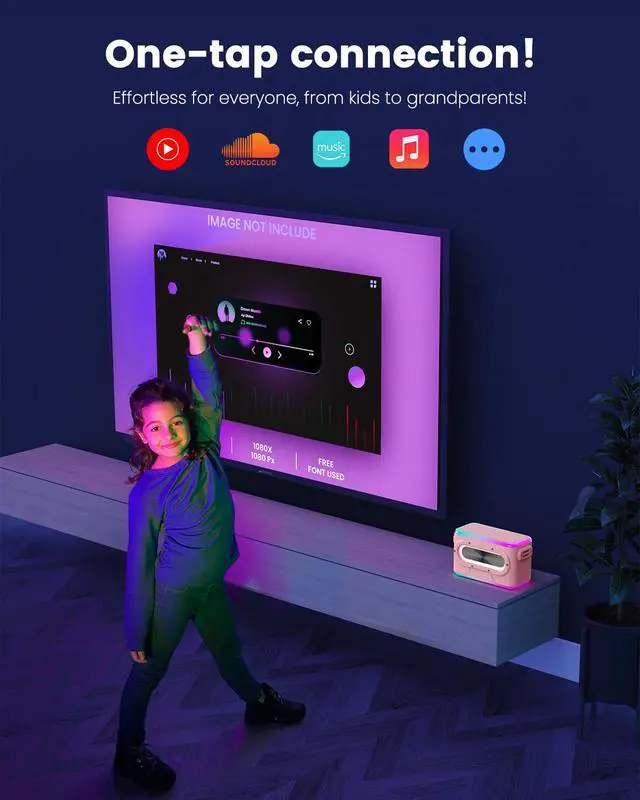 IMMERSIVE 3D SURROUND SOUND The Karaoke Machine for Adults is equipped with silicone metal full-range speakers, utilizing advanced high and low-frequency separation technology for clearer sound, more powerful bass (40Hz), more moderate volume, and the elimination of all noise. Karaoke machine for Kids comes with 2 microphones and supports duet singing, easily sparking up the party vibe. Dynamic lights flash to the beat, creating an immersive party atmosphere that takes the energy to the max!
