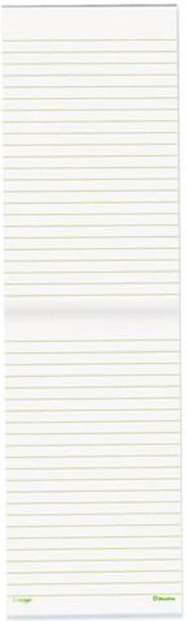 Memo book contains 50 white sheets of acid-free paper. Each sheet is legal/narrow-ruled on both sides. Design features perfect binding at the top and a flexible black cover. Memo book is printed with vegetable oil-based ink