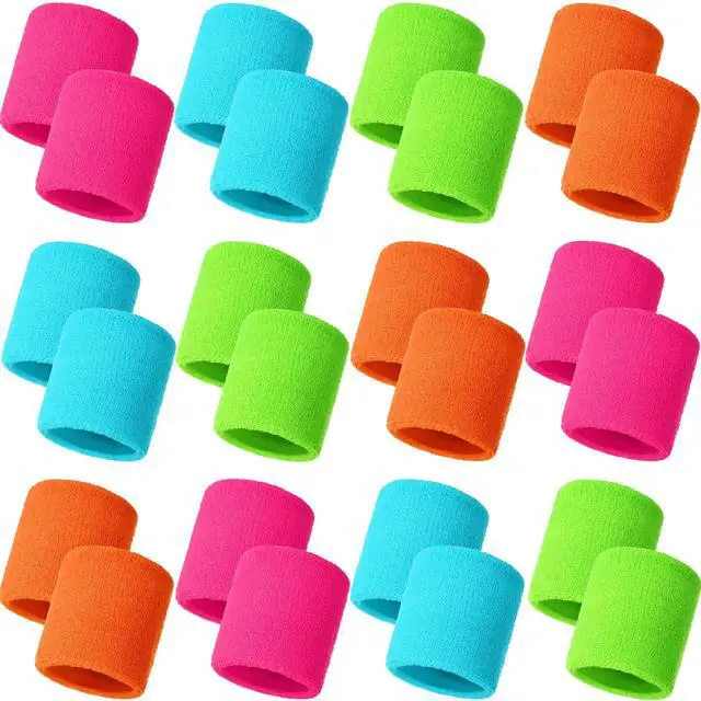 24 Pcs Neon Wristbands for Kids End of The Year Student Gifts Bulk Tennis Wrist Sweatbands 80s Neon Youth Basketball Wrist Bands for Boys Girls 90s Glow Party School Supplies (Stylish Colors)