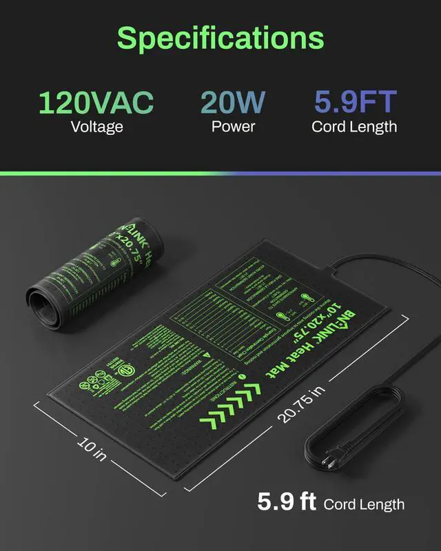 SAFETY & RELIABILITY: ETL Listed for quality assurance, 6 pack 10" x 20.75" heating pad for plants germination with a 5.9ft power cord fits standard 1020 trays and runs on just 20W. Rolls up easily for storage without taking up space.